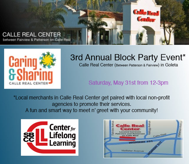 You're invited to the Third Annual Block Party and Caring & Sharing event at the Calle Real Center (between Patterson and Fairview) in Goleta.